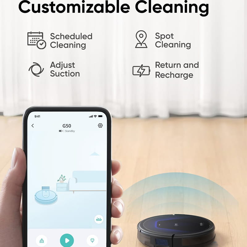 - აპლიკაციით მართვა: Eufy Clean APP