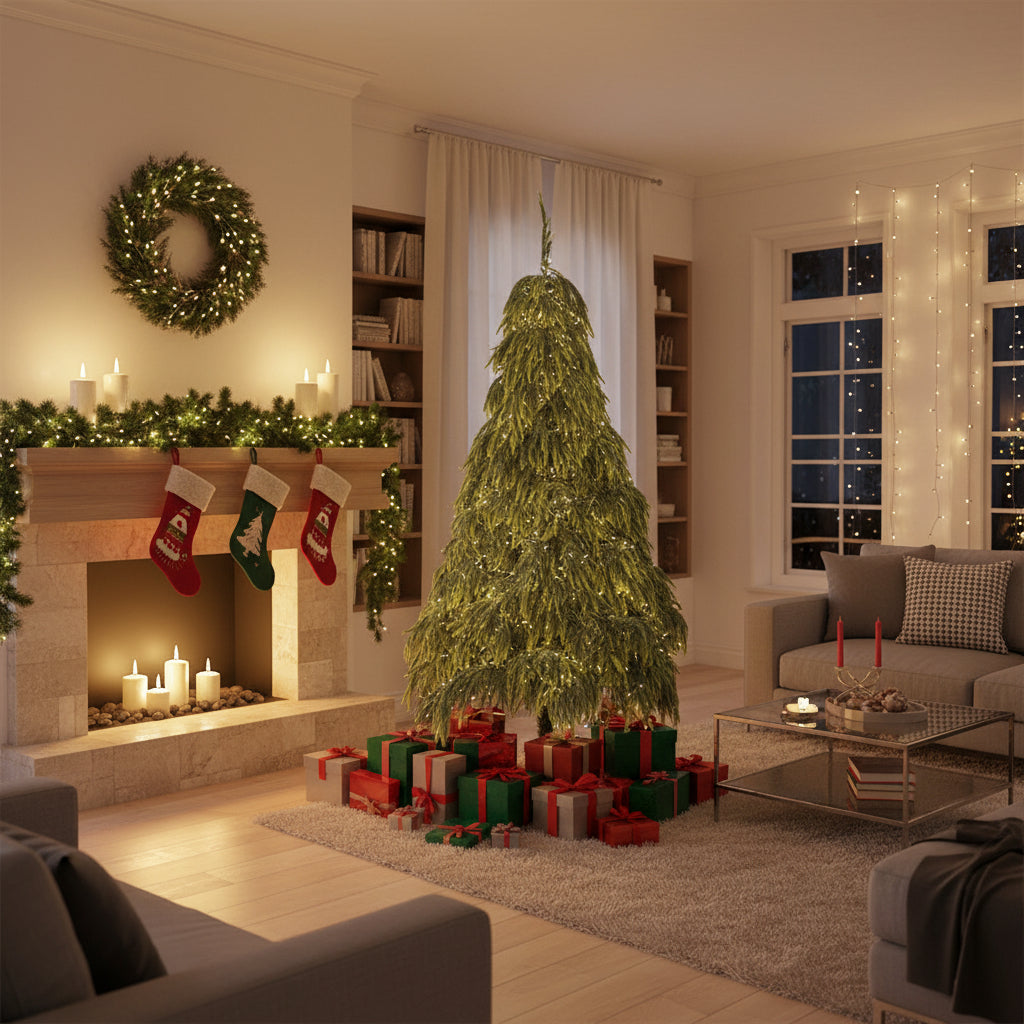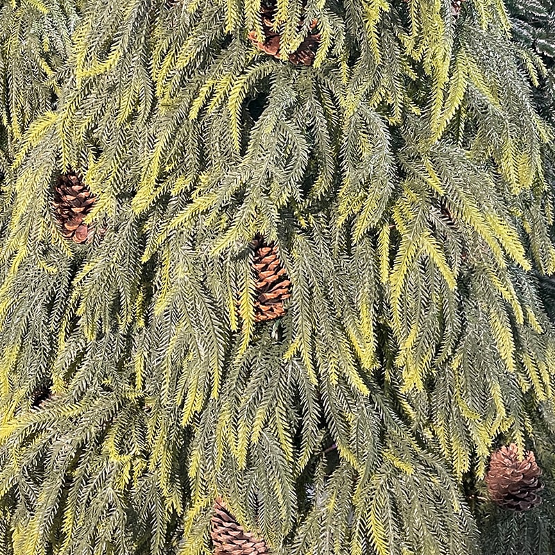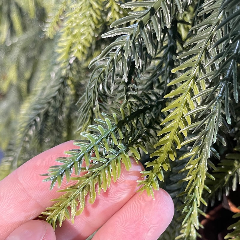 საახალწლო ნაძვის ხე ე.წ კანადური წიწვებით, სილიკონის უსაფრთხო მასალით და გირჩებთან ერთად ულამაზეს ეფექტს ქმნის.