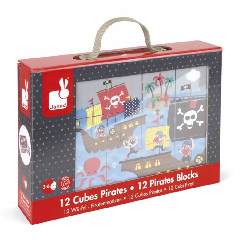 სათამაშო კუბების ფაზლი Janod Cubes made of pasteboard Pirates J02984