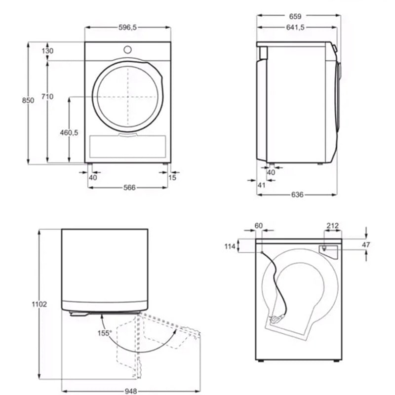 • ზომა: 85 x 59.6 x 63.6 სმ