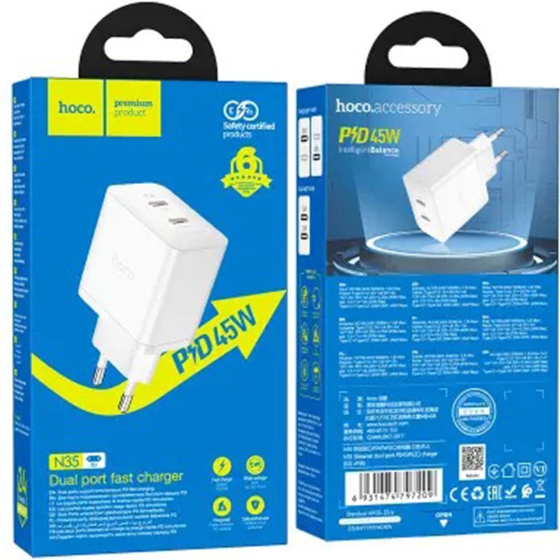 დამტენი Hoco N35 Streamer dual-port PD45W (2C) charger white