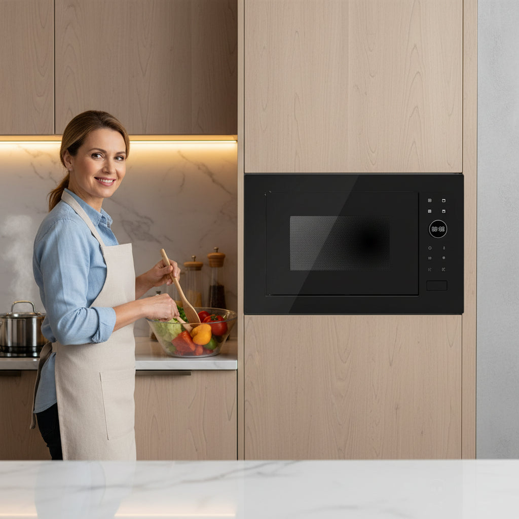 - ტიპი: ჩასაშენებელი მიკროტალღური ღუმელი