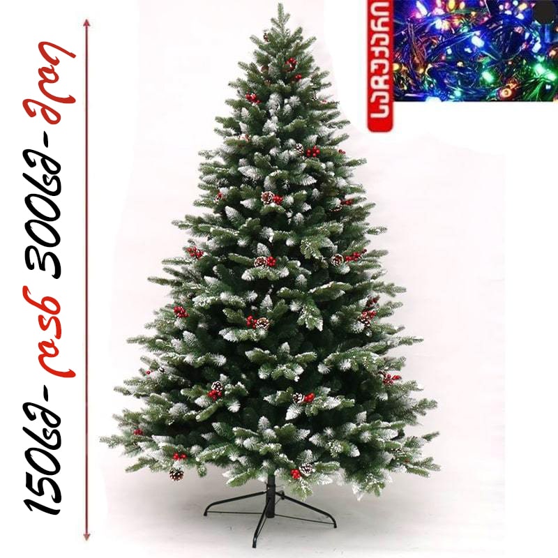 ნაძვის ხე დათოვლილი ბოლოებით, გრძელი გირჩით და კენკრით 150 სმ-დან 300 სმ-მდე SP14 Spoly