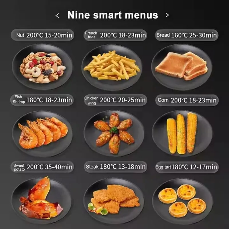 - მომზადების მეთოდი: 360° ცხელი ჰაერის ცირკულაციით
