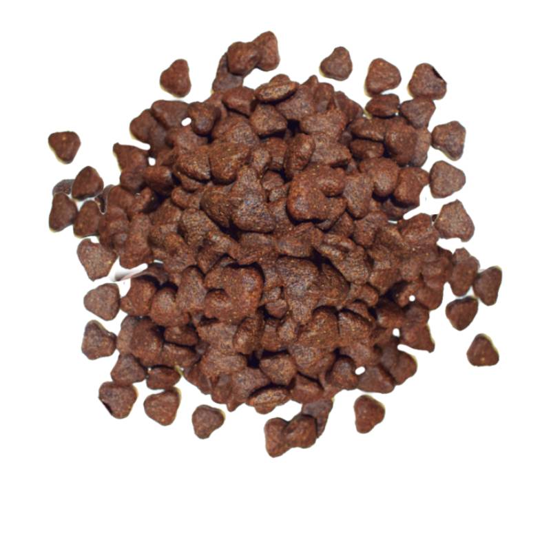 დეჰიდრატირებული ორაგულის ცილა (20%), ბრინჯი (20%), სიმინდი, ყავისფერი ბრინჯი, ბარდა, ფრინველის ცხიმი, დეჰიდრატირებული ფრინველის ცილა, ჭარხლის რბილობი (4%), ჰიდროლიზებული ფრინველის ცილა, მინერალები, ბუნებრივი ანტიოქსიდანტები (როზმარინი,შავი მოცხარი, ბროწეული), გამხმარი მწვანე ტუჩის მიდიები (500 მგ/კგ), საფუარი (MOS-ის წყარო 450 მგ/კგ).