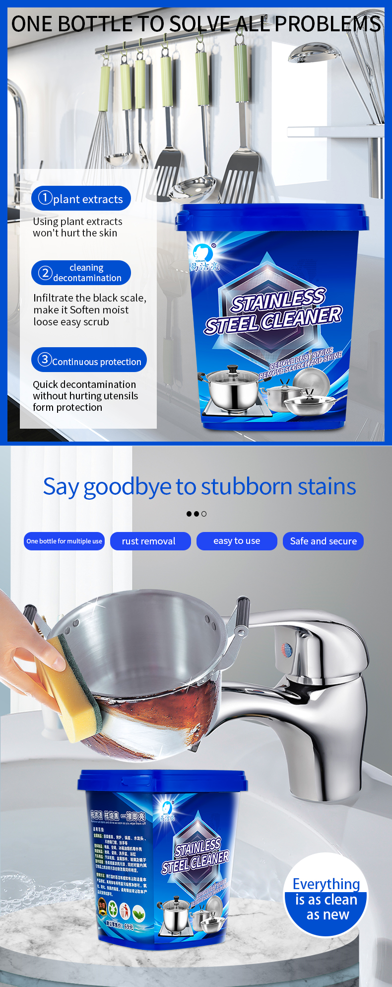 უჟანგავი ფოლადის ქვაბების, ტაფების და სამზარეულოს ზედაპირების საწმენდი საშუალება 0236