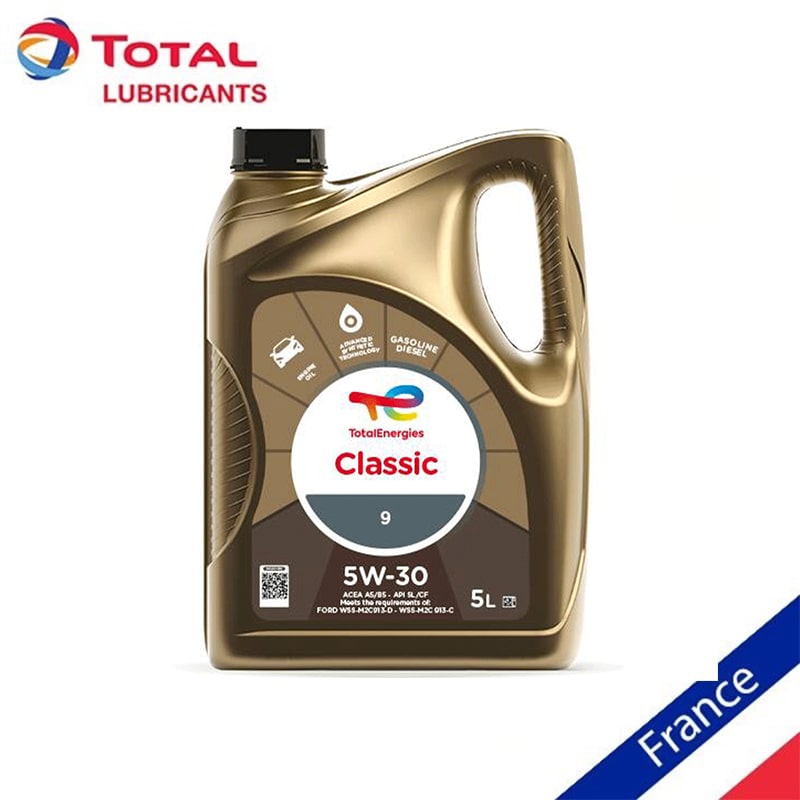 - TotalEnergies Classic 9 5W30 სინთეტიკური ტექნოლოგიის ზეთი ყველა ბენზინისა და დიზელის ძრავისთვის დანამატების ნაკრების გამოყენებით, საგულდაგულოდ შერჩეული ფუნქციონირებითა და პროპორციებით, ევროპული მწარმოებელთა ასოციაციის ხარისხის სტანდარტების შესაბამისი