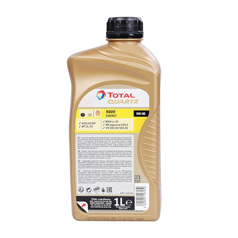 - TotalEnergies Quartz 9000 Energy ძრავის ზეთი დამზადებულია სინთეზური ბაზისური ზეთებისა და მაღალი ხარისხის დანამატების ინოვაციური ნაზავით, რაც უზრუნველყოფს ოპტიმალურ შეზეთვას ტემპერატურის ფართო დიაპაზონში და იცავს თქვენს ძრავას ცვეთისა და დაზიანებისგან