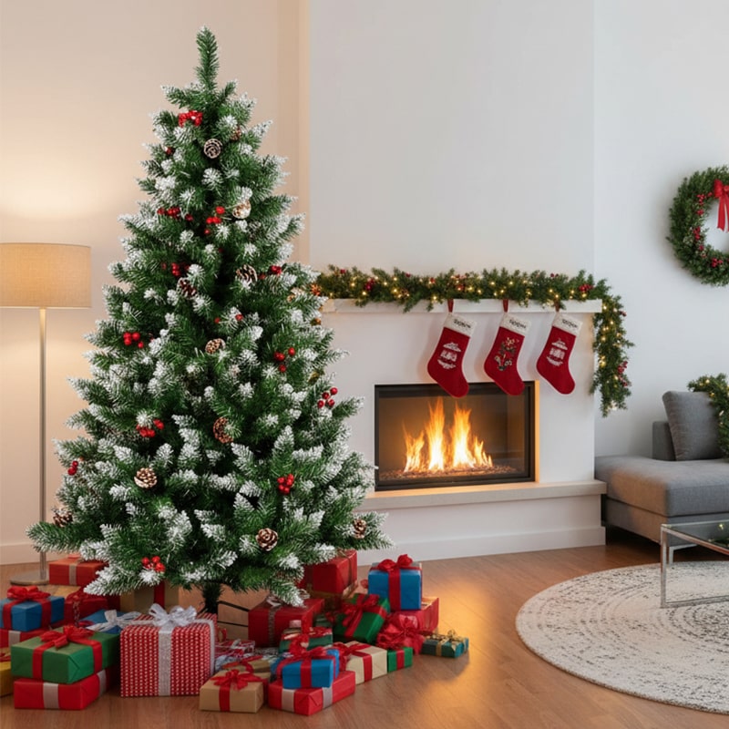 პოლონეთში დამზადებული ფუმფულა ნაძვის ხე ე.წ ნორმანდიული წიწვებით. მწვანე მოდელი, დათოვლილი ბოლოებით, ბუნებრივი ვიზუალის გირჩებით და კენკრით გაგილამაზებთ სადღესასწაულო დღეებს.