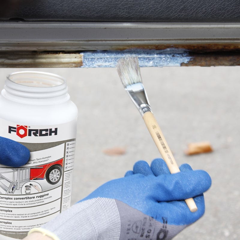 - ფხვიერი ჟანგის მოცილების შემდეგ აღწევს ზედაპირებში