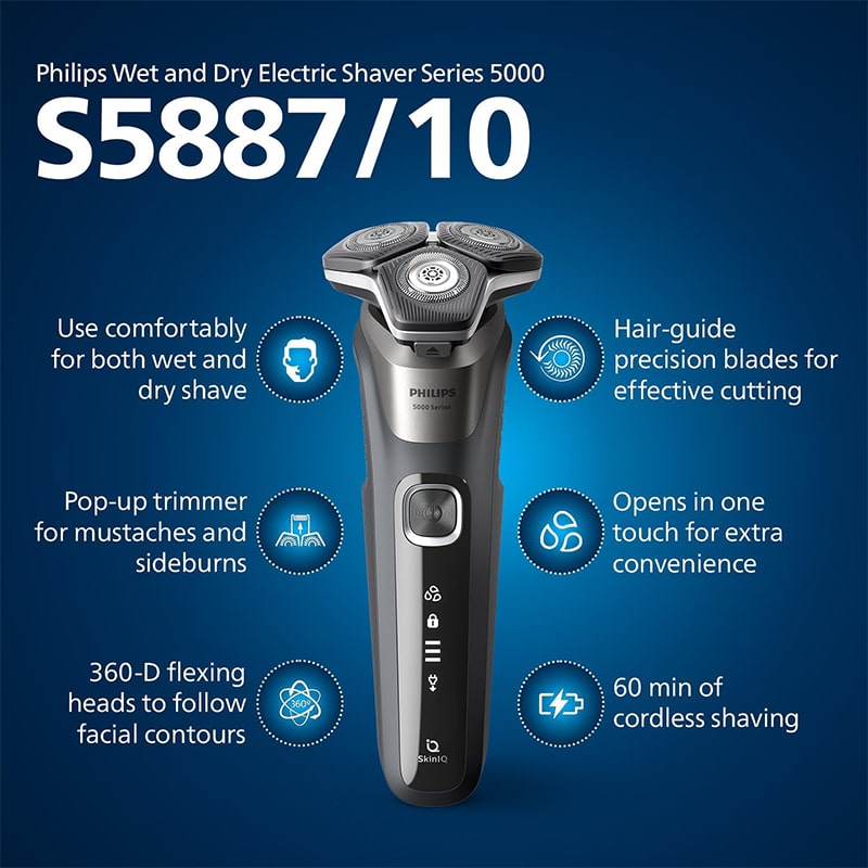 • 360°-ით მბრუნავი თავაკები და ჩაშენებული ტრიმერი