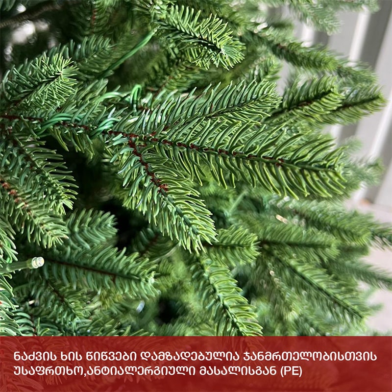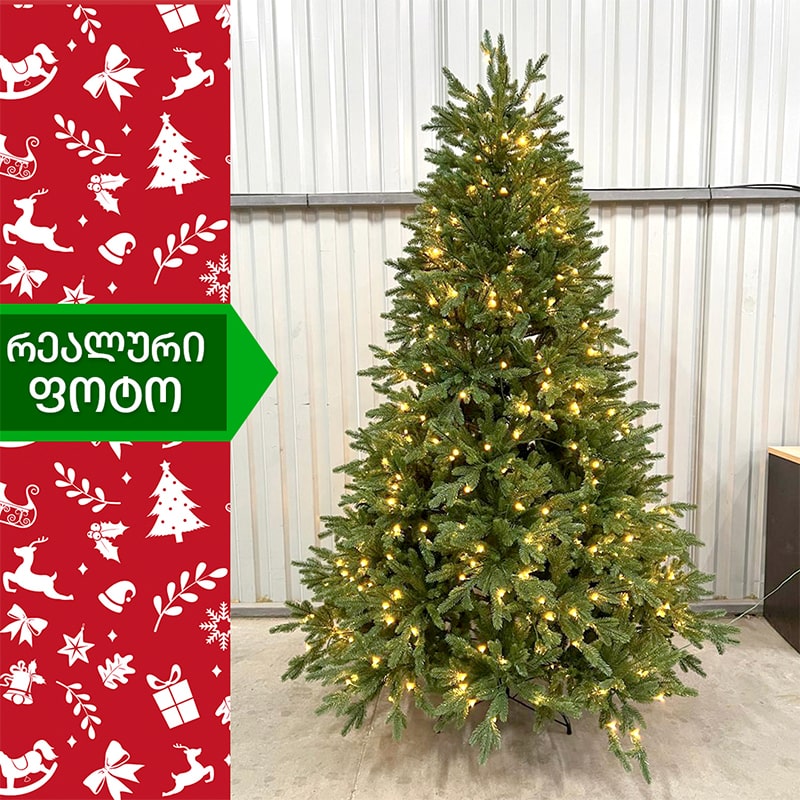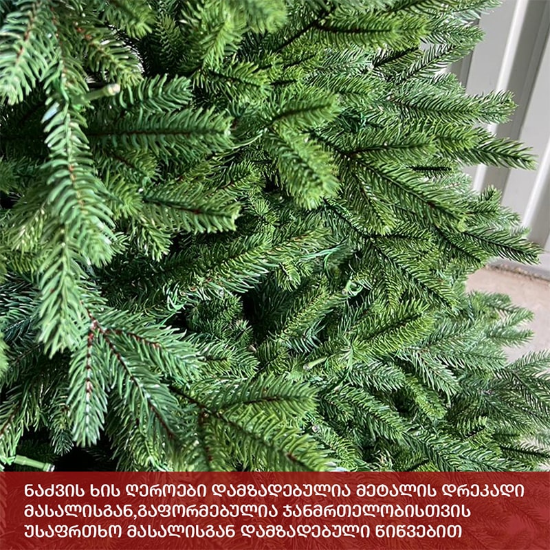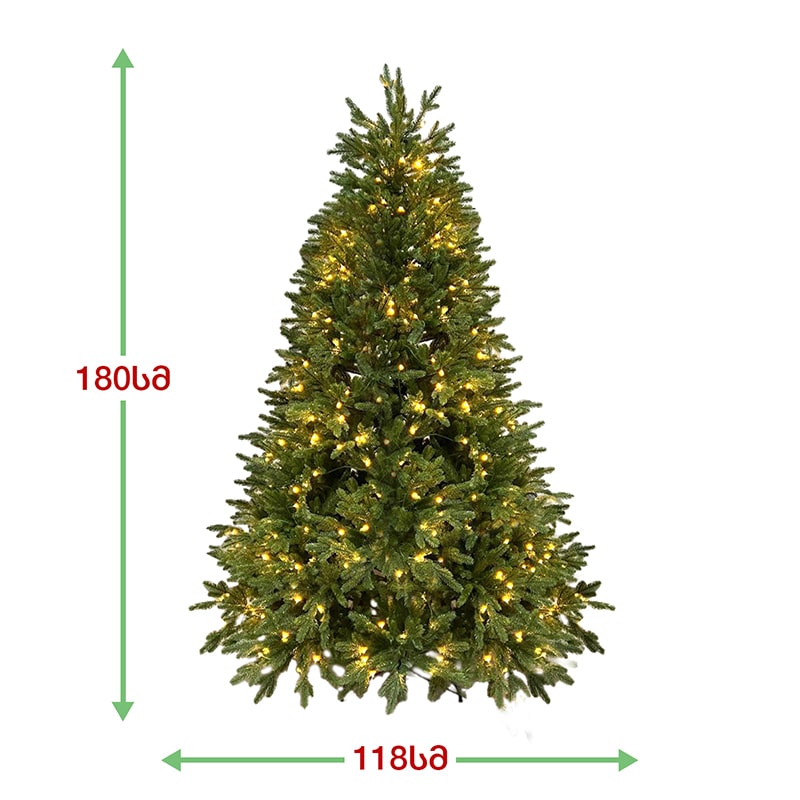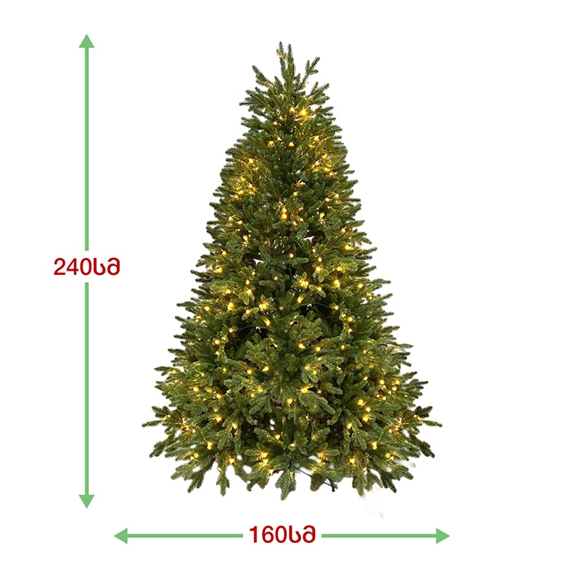 - ტიპი: ბუნებრივის მსგავსი მწვანე ნაძვის ხე, ინტეგრირებული LED ნათურებით