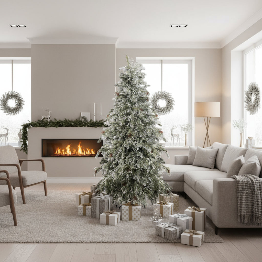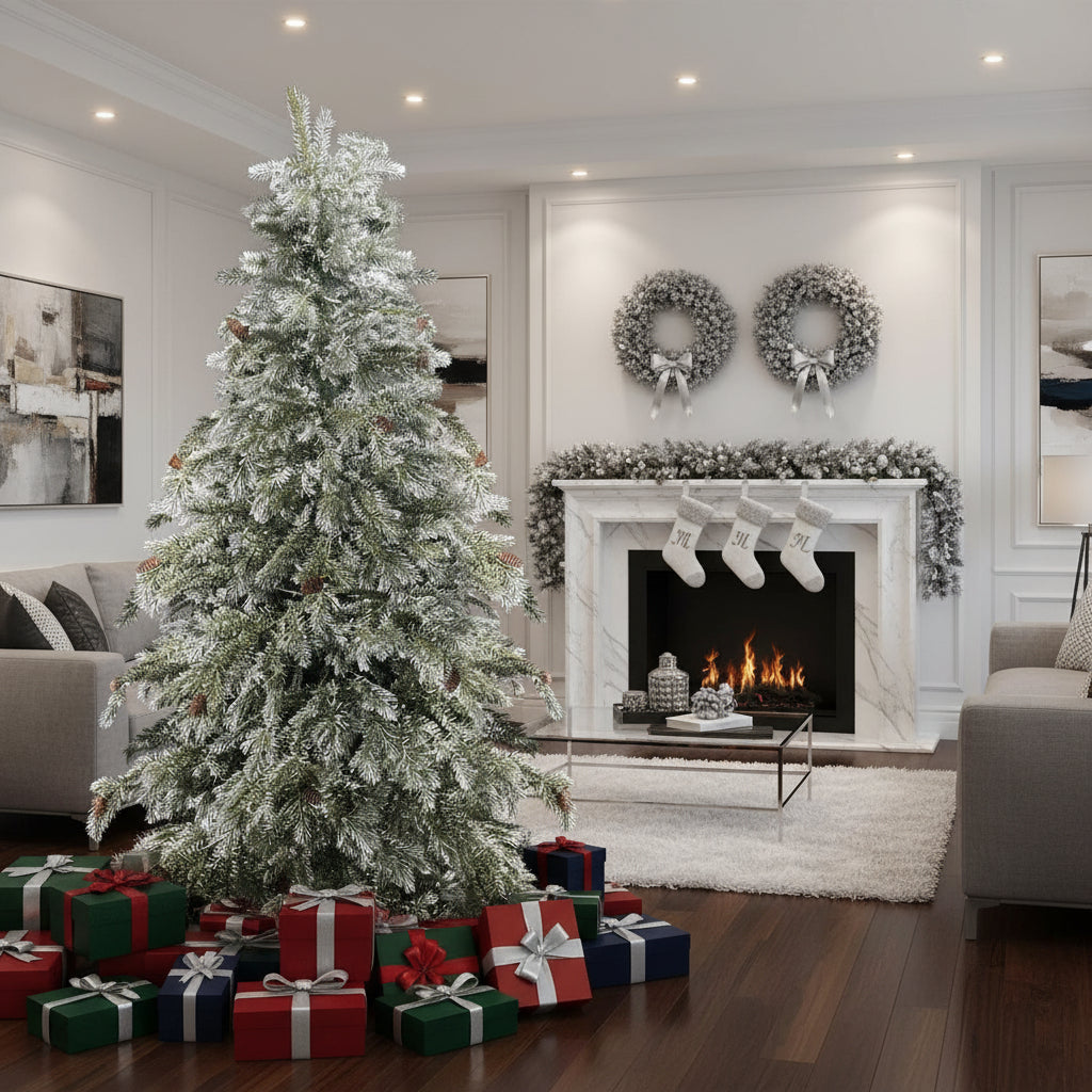 საახალწლო ნაძვის ხე ე.წ კანადური წიწვებით და სილიკონის უსაფრთხო მასალით. SP877 რეალურთან მაქსიმალურად მიმსგავსებული, დაფიფქული და გრძელი, გადმოკიდებული წიწვებით ულამაზეს ეფექტს ქმნის.