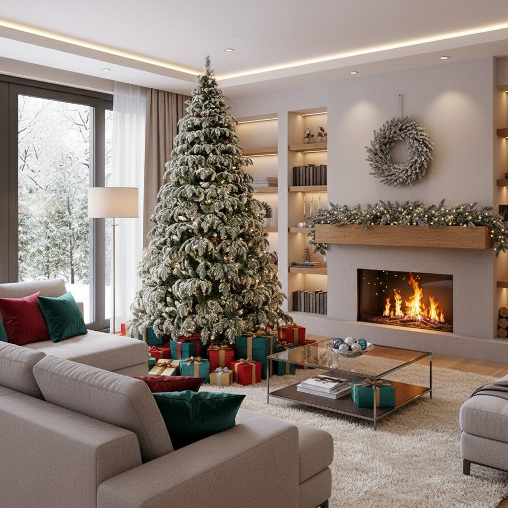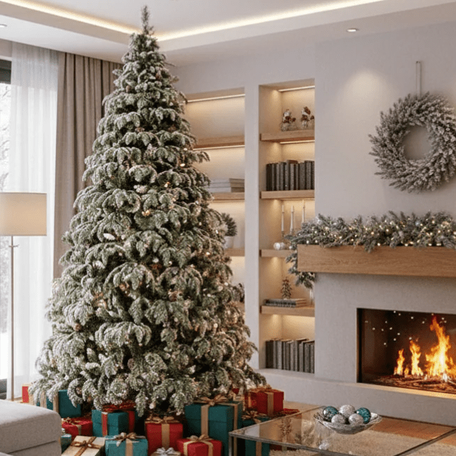 ნაძვის ხე სილიკონის წიწვებით. მწვანე, ბუნებრივი დათოვლვით, თანამედროვე მოდელი ახალი წლის კიდევ უფრო გასალამაზებლად.
