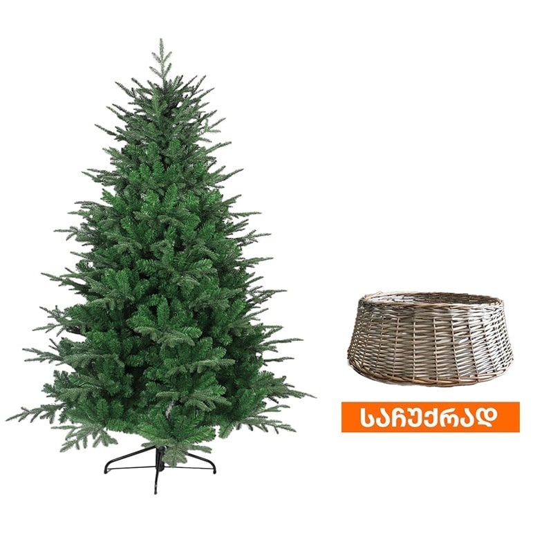 ნაძვის ხე ტალინი 195 სმ (DS-195) + საჩუქარი ნაძვის ხის მრგვალი მოწნული კალათა SKIRT-2