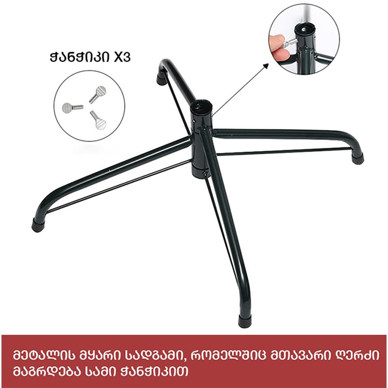 • თავსდება ნაძვის ხის ძირზე, სადგამისა და მავთულების დასაფარად
