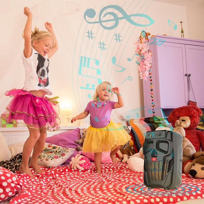 - ფუნქციები: MIC / USB / TF / FM / AUX