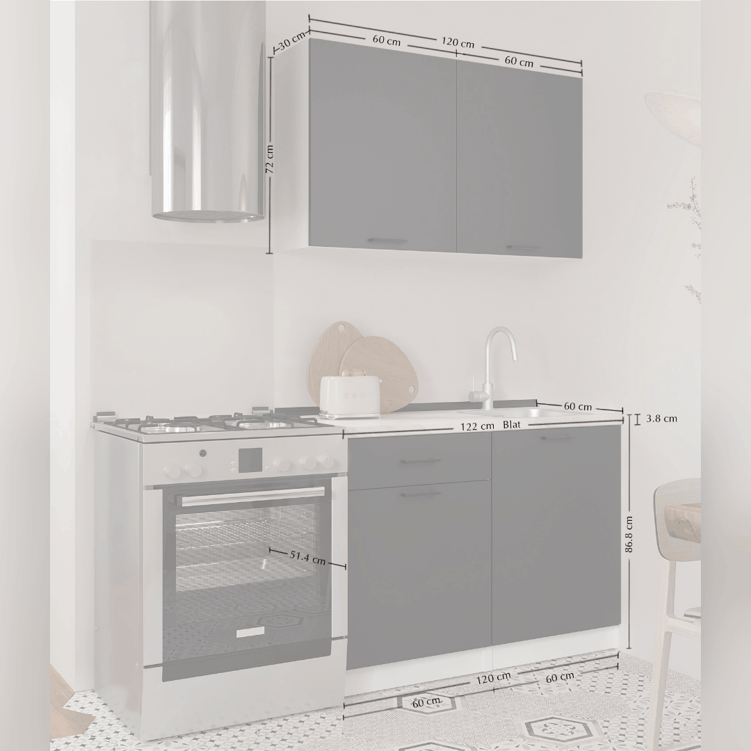 Нижняя часть: Длина: 120 см, Глубина: 60 см, Высота: 86,8 см